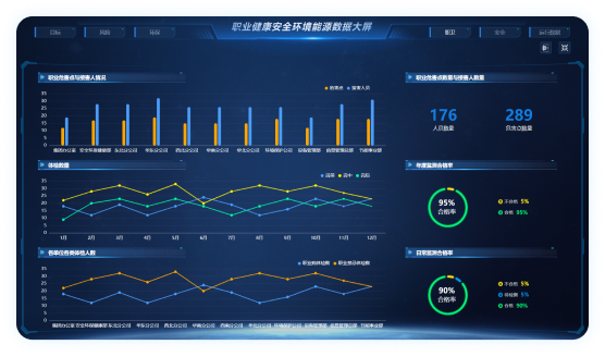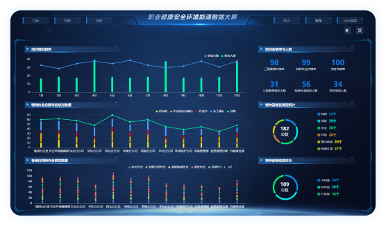 職業(yè)健康大屏:顯示員工的職業(yè)健康狀況和相關(guān)統(tǒng)計(jì)
