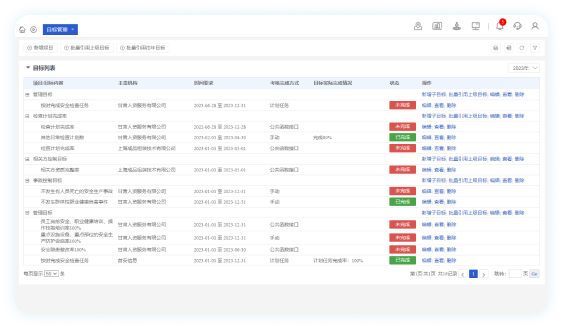 目標(biāo)設(shè)定:制定集團(tuán)和各子公司的長(zhǎng)期和短期安全生產(chǎn)目標(biāo),并實(shí)時(shí)監(jiān)控